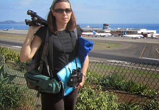 No dia seguinte, vamos a pista do aeroporto para fazer a monitorização das comunidades de invertebrados. Para isso, vamos recorrer as 20 quadrículas com os nossos coletes de seguridade e o líquido anticongelante, para preencher as armadilhas “pitfall”, que se encontram ao nível do solo. Um dia depois, realizamos os censos no aeroporto. Levamos binóculos, telescópio e tripe, para um registro preciso das espécies menores ou mais distantes, e uma cadeira para levar melhor a espera. Na quinta, já faz 48 horas que colocamos o líquido das pitfall na pista do aeroporto, pelo que temos que recolher todos os invertebrados capturados. Levamos nossos coletes e uma caixa com 20 frascos com álcool, o numero de quadriculas da pista que têm armadilhas, e recolhemos o conteúdo das pitfall. No dia seguinte, levamos os frascos ao laboratório para a identificação das especies e, afortunadamente, as lupas binoculares ficam lá porque não são transportáveis.